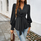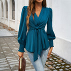 Damska bluzka z dekoltem w serek i paskiem w talii